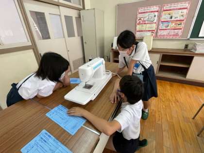 などなど相談しながら、おそるおそる糸を通し、練習布を使って練習していました。