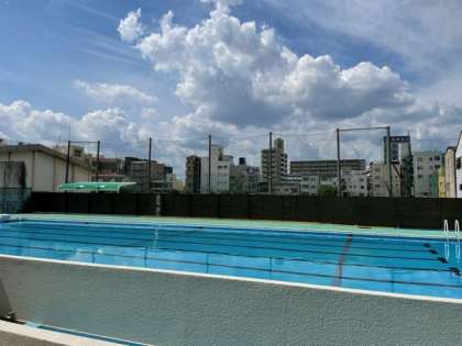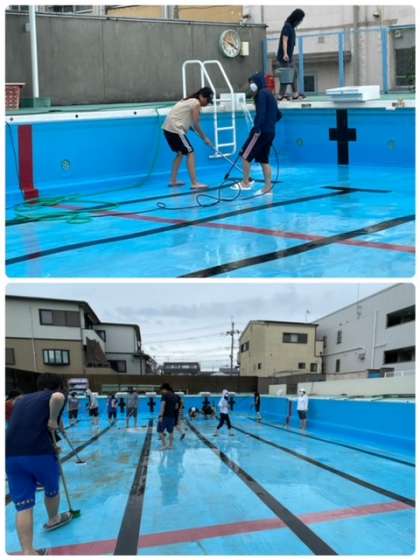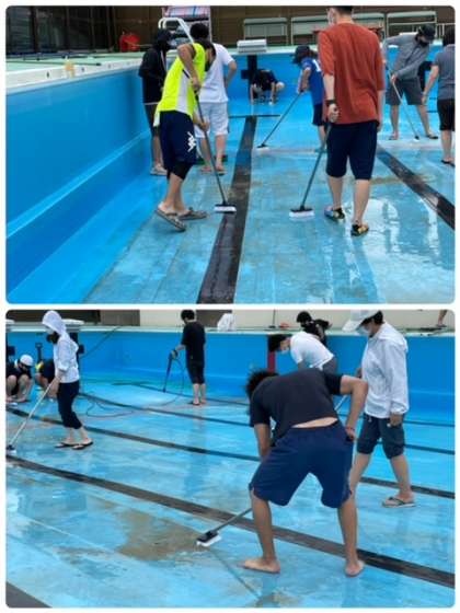 みんなに気持ちよく泳いでもらえるように、心を込めて清掃しました。