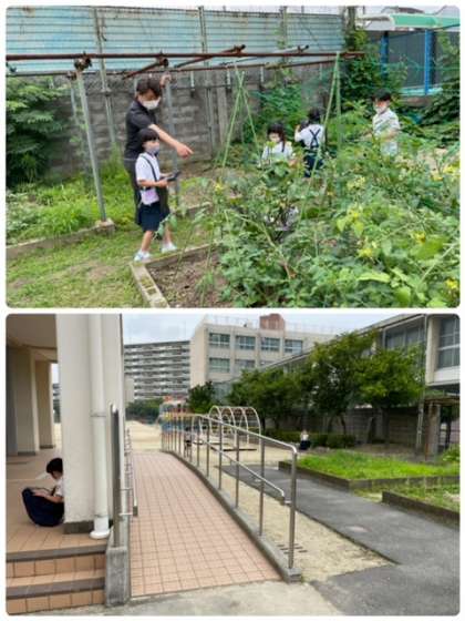 学校には、たくさんの植物があります。