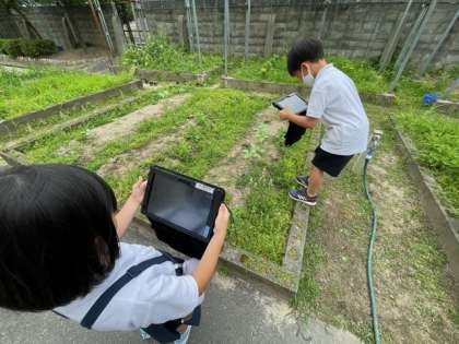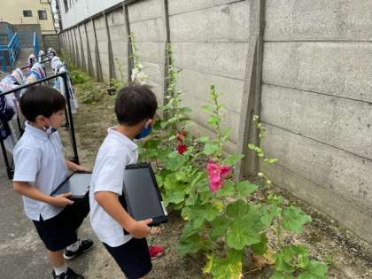 学校に育つ植物を見つけ、タブレットで撮影しました。