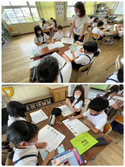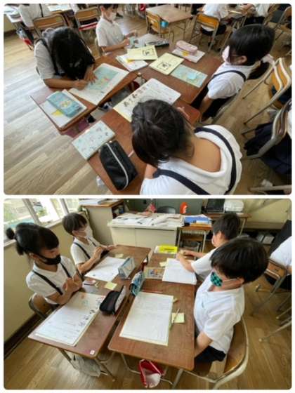学習したことをまとめ、プリントに書いたことをグループで回し、よかったことやきづいことをふせんに書き、貼りました。