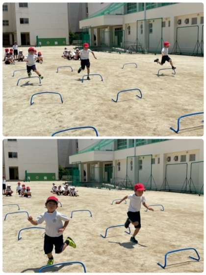 上手な子は、まるでミニハードルがないかのごとく、走り切る姿が見られました。