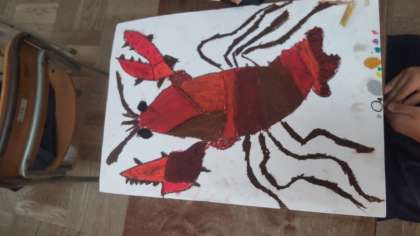 画用紙いっぱいに大きくザリガニを描きました。