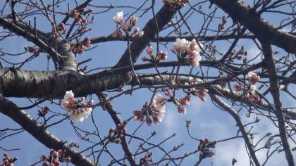 横堤小学校の桜も、本日一輪だけですが花を咲かせました。