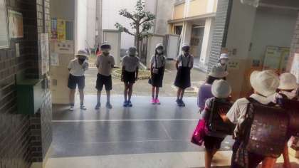 いまは雨も上がり、むしむししていますが、子どもたちからの元気なあいさつが返ってきました。