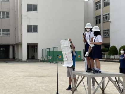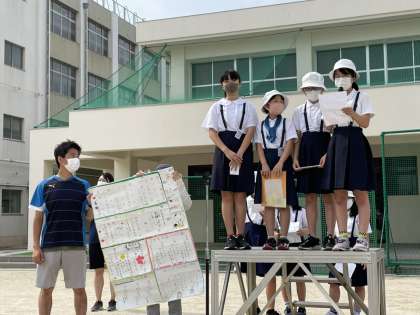 全校朝会で、新聞委員会から「あいさつ川柳」について報告がありました。