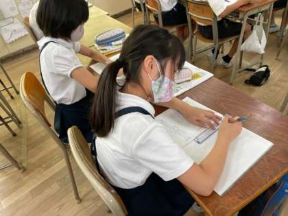 何倍かをもとめる方法を考え、問題に取り組みました。