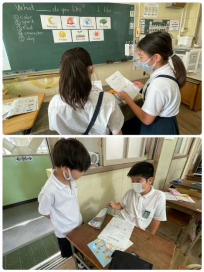 好きな色や、スポーツ、食べ物を英語で質問し合いました。