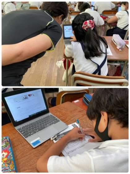 サイトの中には、読むのが難しい漢字や意味の分からない言葉があるようで、苦労しながらでしたが、それぞれが気になるオリンピック種目の分かったことをプリントにまとめることができました。