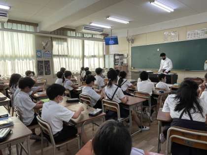 校長先生のお話のあと、生活指導担当の先生から夏休みの過ごし方についてのお話がありました。