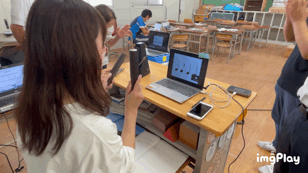 マイクのミュートを切り、クラスごとにリズム打ちの練習をしました。