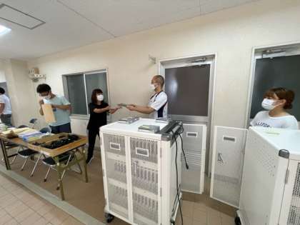 一人一台パソコンの受け渡しを随時行っています。