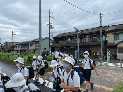 子どもたちの登校時には、雨は降っていなくてよかったです。
