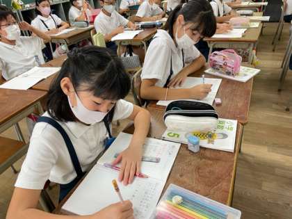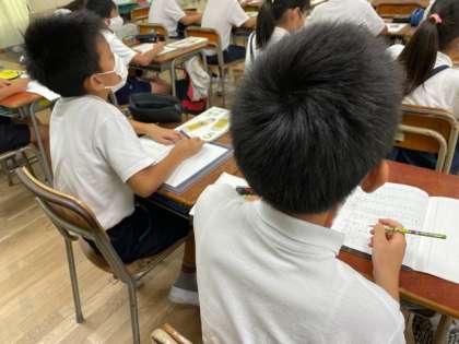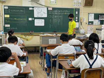 どうすれば比べることができるかの自分の考えをホワイトボードに書き、みんなの前で発表することができました。