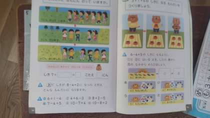 今日は、たし算とひき算がまじった計算問題を考えました。