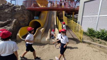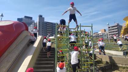 お弁当を食べたあとは、公園の遊具を使って遊びました。