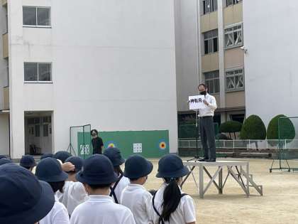 校長先生のお話のあと、集会担当の先生から10月の生活目標についてお話がありました。
