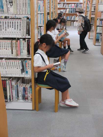 図書館司書の先生に、図書館の使い方を教えてもらいます。