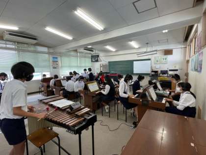 同じ楽器のグループで助け合いながら、練習に取り組んでいます。