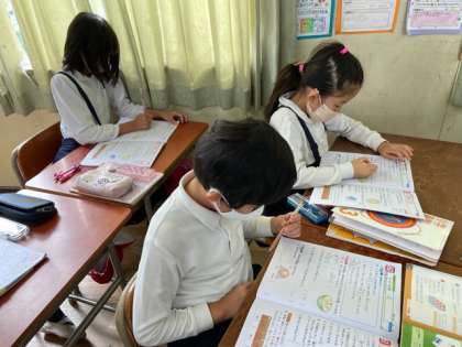 今まで学習したことを使って、ドリルや問題に取り組みました。