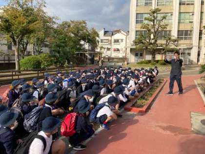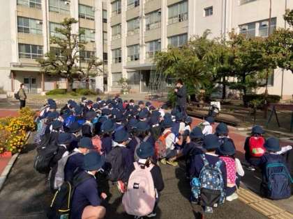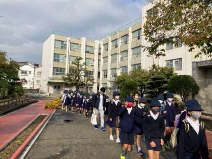 昨日の雨はすっかり止み、とても良い天気になりました。5年生は大仙公園ヘ行きます。