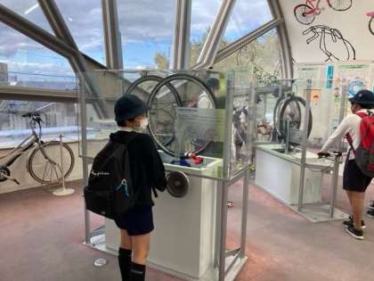 自転車博物館で発電の仕組みや変速機の役割について体験・学習しました。