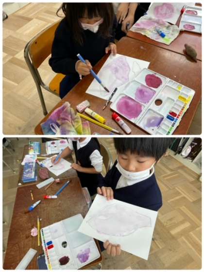 絵の具をぬるときに、水の量に気をつけて、てんてんぬりで丁寧に、細かく色を重ねてぬっていくことができました。