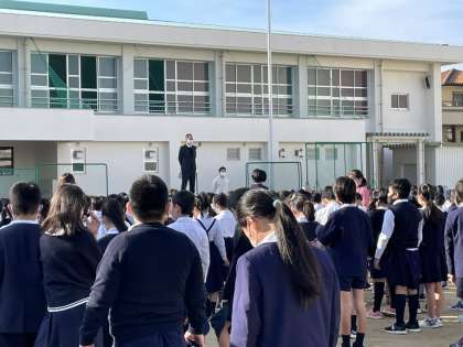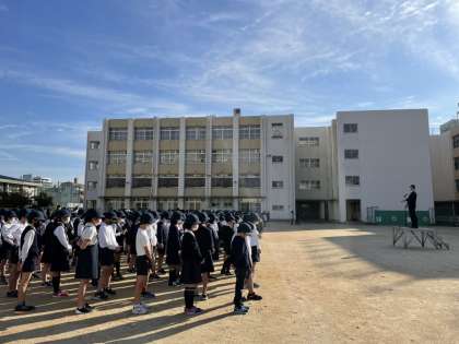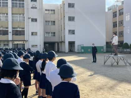 校長先生のお話のあと、集会担当の先生から11月の目標「ろうか、かいだんは右側を歩こう」についてのお話がありました。
