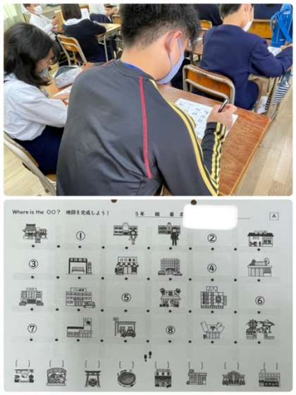 それぞれの場所がどこにあるのか、英語を聞いて当てはめます。