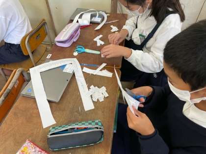 カードに書かれた項目に当てはまる友だちの名前を書き、切り分けて次回交換します。