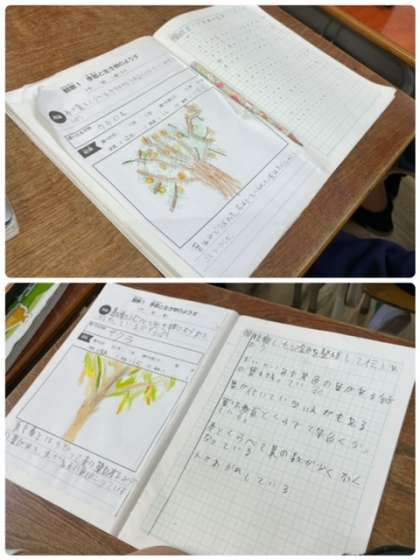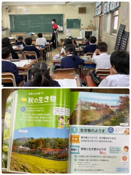 春や夏と比べて生き物の様子を見て、気がついたことを発表しました。