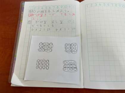 3×4、2×6などたくさんのかけ算の式をたてることができました。