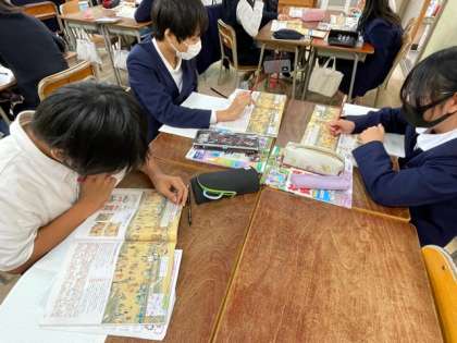 よく見ると、お猿さんがいるなどいろいろな発見をすることができ、町のにぎわいに気づくことができました。