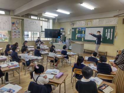 職場体験実習に来ている中学生は、先生の仕事について勉強しています。