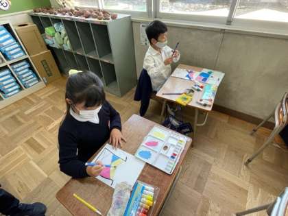 水の量に気をつけて、はみ出さないように丁寧に色をつけることができました。