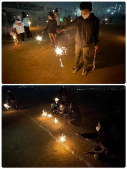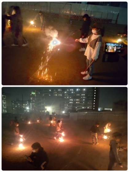 みんなで花火を楽しんでいます。