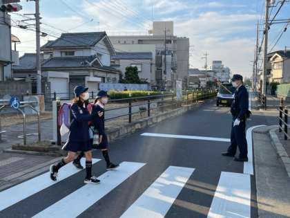 今日は、朝の見守りに、警察の方が来てくださいました。