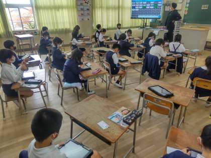 タブレットの中に入っている「ナビマ」(学習ドリルアプリ)の使い方を練習潜在しています。