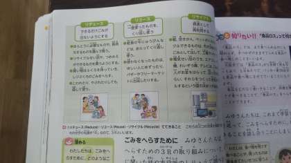 食品ロスをおさえるために、「リディュース」「リユース」「リサイクル」の取り組みについて確認しました。