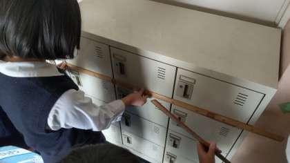 鉄棒やロッカーなど、学校内のいろいろなものを測りました。