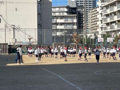 子どもたちは、お腹をペコペコにして、おいもを食べれるように、運動場で元気にドッジボールをしています。