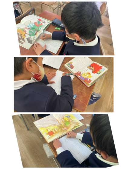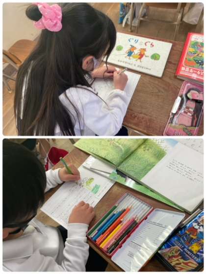 大好きな場面を選んで、一生懸命絵を描いたり、しょうかい文を書いたりすることができました。