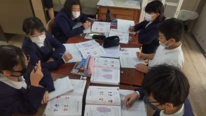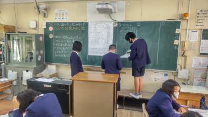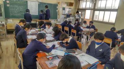2つの人口ピラミッドから分かることを、班で相談しました。