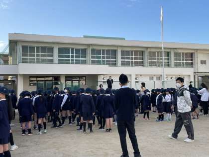 今日は、2学期最後の全校朝会です。