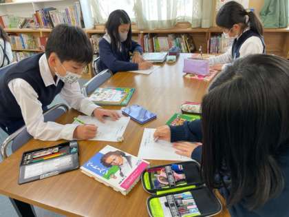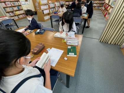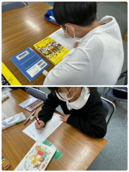 図書室で紹介したい本を選び、おすすめ箇所と絵を描きました。