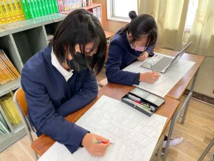 その写真を見ながら細かいところまでよく見て、描くことができています。