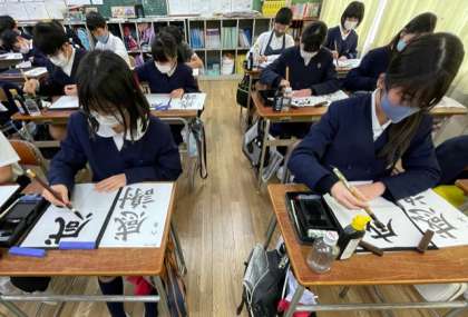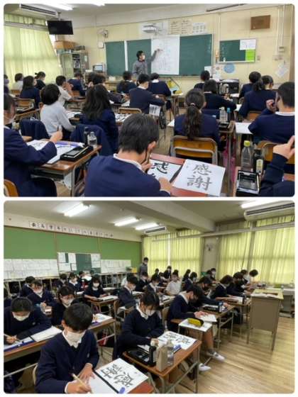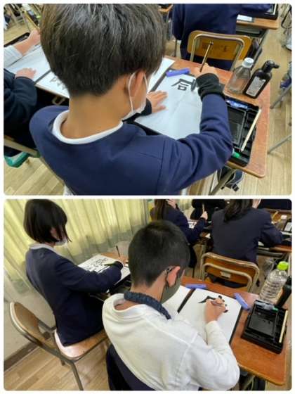 凛とした雰囲気の中で、筆をとる6年生でした。