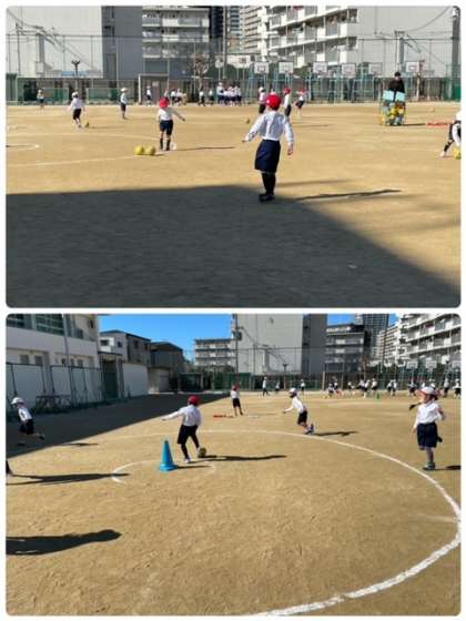サッカーボールを使い、ボール運動をしました。