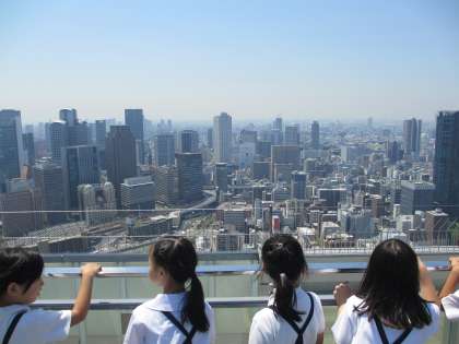 3年生が遠足で、環状線一周&梅田スカイビル空中庭園に行きました。