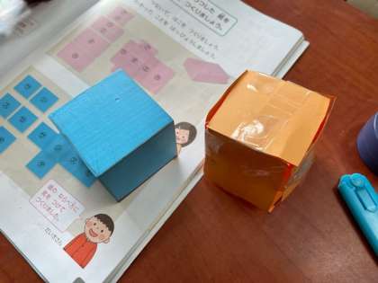 実際に自分たちではこを作り、はこのとくちょうについて気づいたことを発表し合いました。